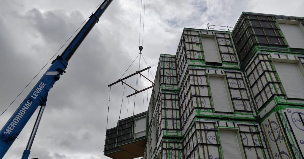 A Rennes (Ille-et-Vilaine), depuis décembre dernier, 481 modules sont en cours de livraison, assemblés façon Lego pour construire une résidence étudiante, pour les besoins de l’école de commerce Rennes Business school. C’est le plus grand projet de construction hors-site en France.