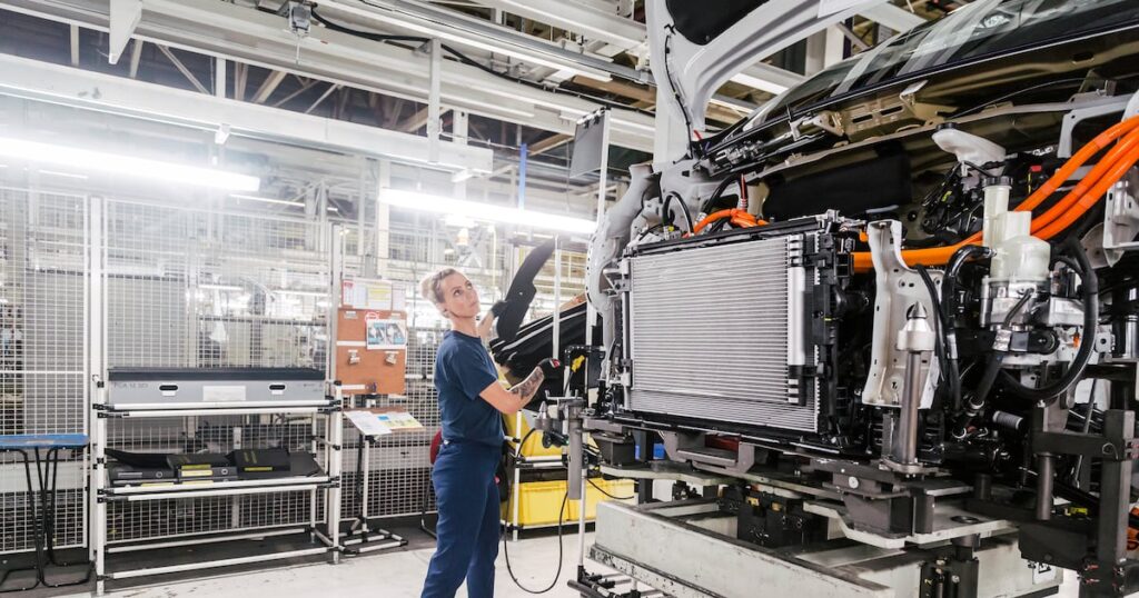 Presque 100000 unités de plus. La production hexagonale de Stellantis devrait enregistrer en 2025 un bond de 17% par rapport à l’année précédente. Selon les dernières prévisions du constructeur, présentées mardi 25 septembre aux partenaires sociaux lors d’un comité paritaire stratégique, il devrait fabriquer au total un peu moins de 662000 voitures dans ses cinq usines d’assemblage final françaises. Ces chiffres restent des estimations, par nature susceptibles d’évoluer à la marge, sauf surprise au cours du mois de décembre.