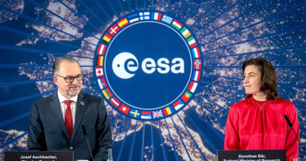 L’Europe spatiale au rendez-vous de son histoire. Après deux jours de négociations, les 23 pays membres de l’agence spatiale européenne se sont engagés à investir 22,1 milliards d’euros, un niveau jamais atteint jusqu’ici, dans des programmes spatiaux pour les trois prochaines années (2026-2028). «Vous avez écrit l’histoire, s’est félicité Joseph Aschbacher, le directeur général de l’Agence spatiale européenne (ESA) en s’adressant aux pays membres de l’agence spatiale européennes ainsi qu’à leurs partenaires. Ce que vous avez réalisé à Brême est unique. C’est inédit dans l’histoire des conférences ministérielles». Cet investissement marque en effet une augmentation de 30% par rapport au précédent budget de l’ESA.